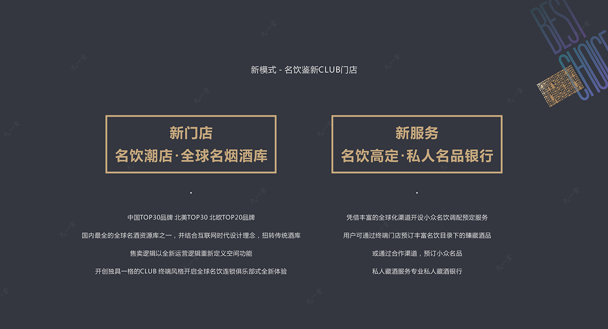 2020年9月,百川名品與九一堂簽訂終端店面品牌形象升級(jí)的戰(zhàn)略合作協(xié)議,在品牌定位策劃,品牌形象VI設(shè)計(jì),終端店面SI設(shè)計(jì)等方面進(jìn)行全方位的品牌創(chuàng)新與升級(jí),打造出更具市場(chǎng)競(jìng)爭(zhēng)力的高端白酒連鎖品牌。