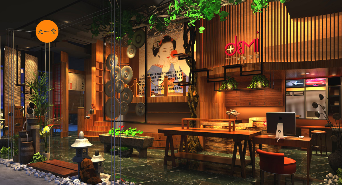 日式黛米藥妝部屋(DEMI)美容院所有產(chǎn)品均進(jìn)口韓日最高科技的護(hù)膚產(chǎn)品。產(chǎn)品與國內(nèi)最大的不同,應(yīng)該是品牌針對(duì)人群的不一樣, 甲方是從事美容行業(yè)多年的業(yè)內(nèi)人事, 之所以選擇日式風(fēng)格來闡述自己的空間店面,這并非偶然,一方面產(chǎn)品大部分來自日本,另一方面甲方非常喜歡日式的禪意文化.成都九一堂商業(yè)空間設(shè)計(jì)將日本的枯山水,一步一小景小景比的造景更有意境。整個(gè)空間體檢非常精致與品味,空間表現(xiàn)上張弛有度,緊湊與留白相輔相成。九一堂商業(yè)空間設(shè)計(jì)把空間體驗(yàn)設(shè)計(jì)用到了極致。成都美容院設(shè)計(jì)一直是九一堂的核心競(jìng)爭(zhēng)力, 門口的枯山石造景,隨著腳步的行進(jìn)踏實(shí)木板進(jìn)來,外墻繪制日式手繪圖,室內(nèi)搭建假二層,增加趣味又增加了一個(gè)功能儲(chǔ)存空間。室內(nèi)軟裝配有櫻花、麻布、白砂石、枯藤等來裝置,讓產(chǎn)品在景中展示。日式黛米藥妝部屋(DEMI)美容院除了空間體驗(yàn)的設(shè)計(jì)打造外,還包括品牌形象的設(shè)計(jì),極簡線條構(gòu)成logo創(chuàng)意的主體,體現(xiàn)精致, 修復(fù), 美滿的品牌內(nèi)涵.