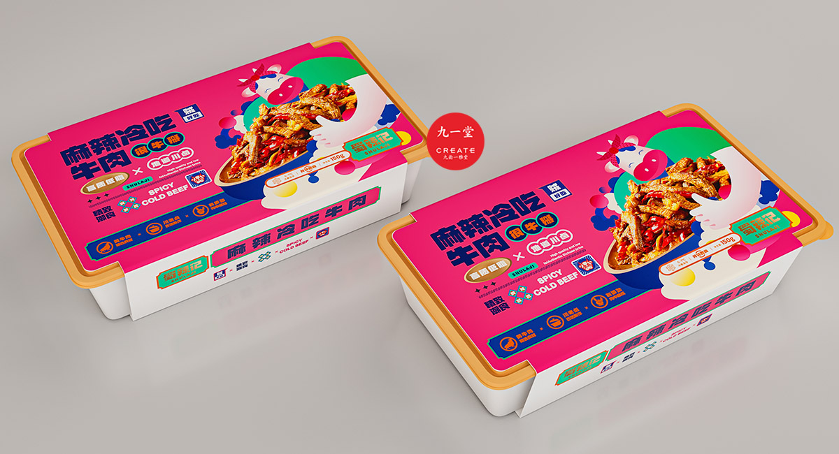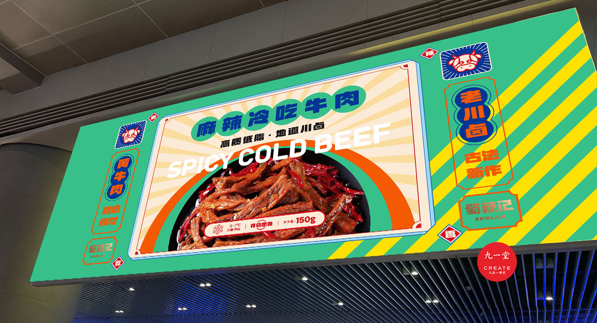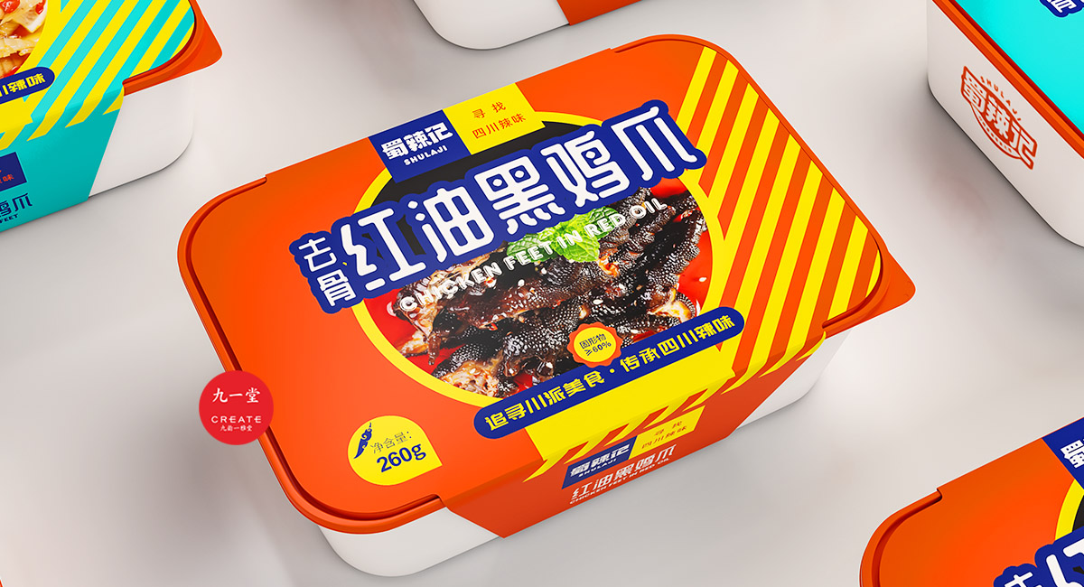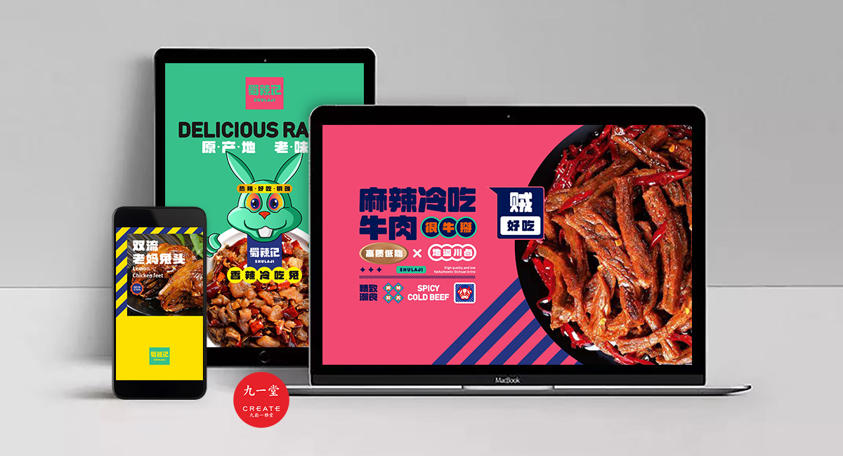 四川獨(dú)有地理環(huán)境,孕育出了許多以辣為主的酸辣雞爪、老麻兔頭、藤椒鴨等極具地方特色的傳統(tǒng)四川小吃。蜀辣記秉著熱愛川蜀辣味的初衷,重新發(fā)現(xiàn)四川味道讓極具地方特色的地方小吃煥發(fā)新的生機(jī),讓大城市快節(jié)奏下生活和工作的年輕人閑下來時(shí),能夠享受食物帶來的美好休閑時(shí)光。此次九一堂受邀參與蜀辣記項(xiàng)目制作,我們旨在打造一個(gè)新銳、開放、快樂的地方小吃品牌形象而努力。