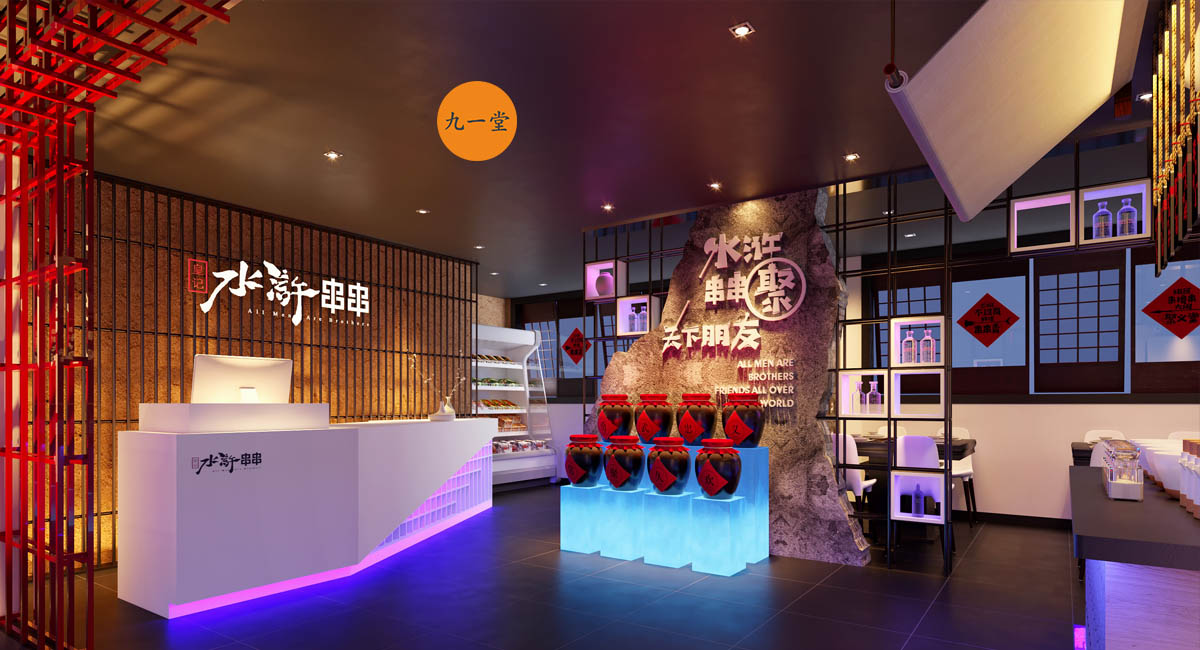 皇記·水滸串串火鍋店設(shè)計用心甄選每一份新鮮的優(yōu)良食材,反復(fù)不斷嘗試更健康、生態(tài)又兼具美味的醇美湯底。以更符合現(xiàn)代人健康標準和生活習(xí)慣的鮮美食材,呈現(xiàn)更體貼的新鮮串串香。由此成都九一堂品牌策劃設(shè)計為皇記·水滸串串火鍋梳理出屬于自己的獨特的品牌核心定位語”常聚久歡”將它的品牌調(diào)性,品牌定位,品牌體驗貼心融為一體。